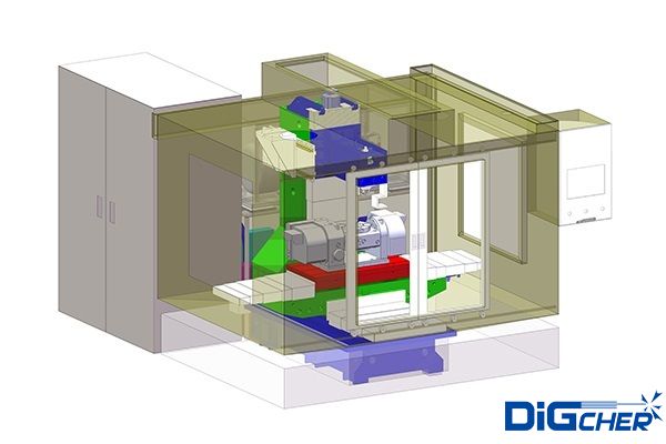 機床部分:使用BT40通用刀柄作為高壓水噴頭載體,配以自動刀庫換刀系統(tǒng)。高精度電腦數(shù)控分度盤提高加工精度和加工效率。